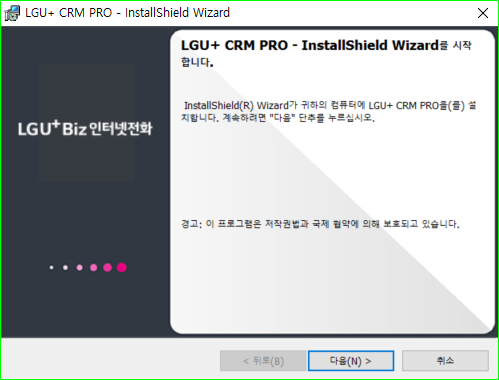 1) CRM Pro 설치를 시작합니다. 다음 내용을 확인 후 다음을 선택합니다.