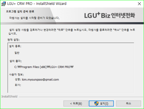 3) 설치 정보를 확인하고 설치를 클릭합니다.