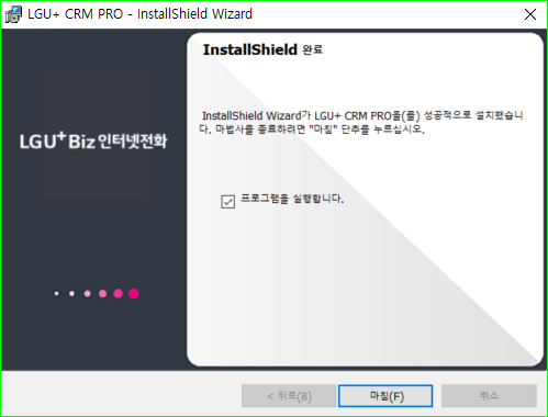 5) CRM Pro 설치가 완료되었습니다. 마침을 선택합니다.