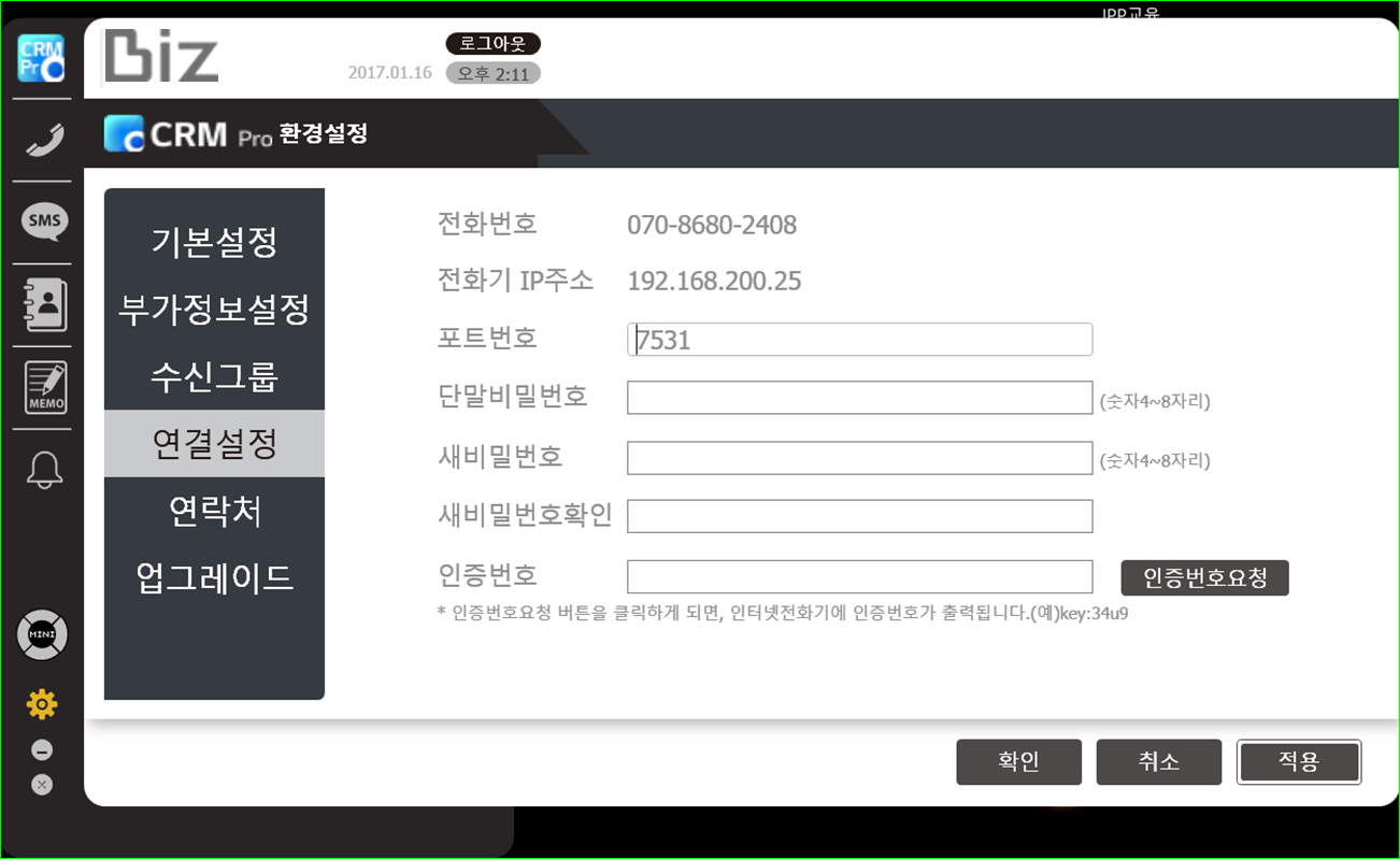1) 아이피가 없는 경우 전화기에서 확인 후 직접 입력합니다.